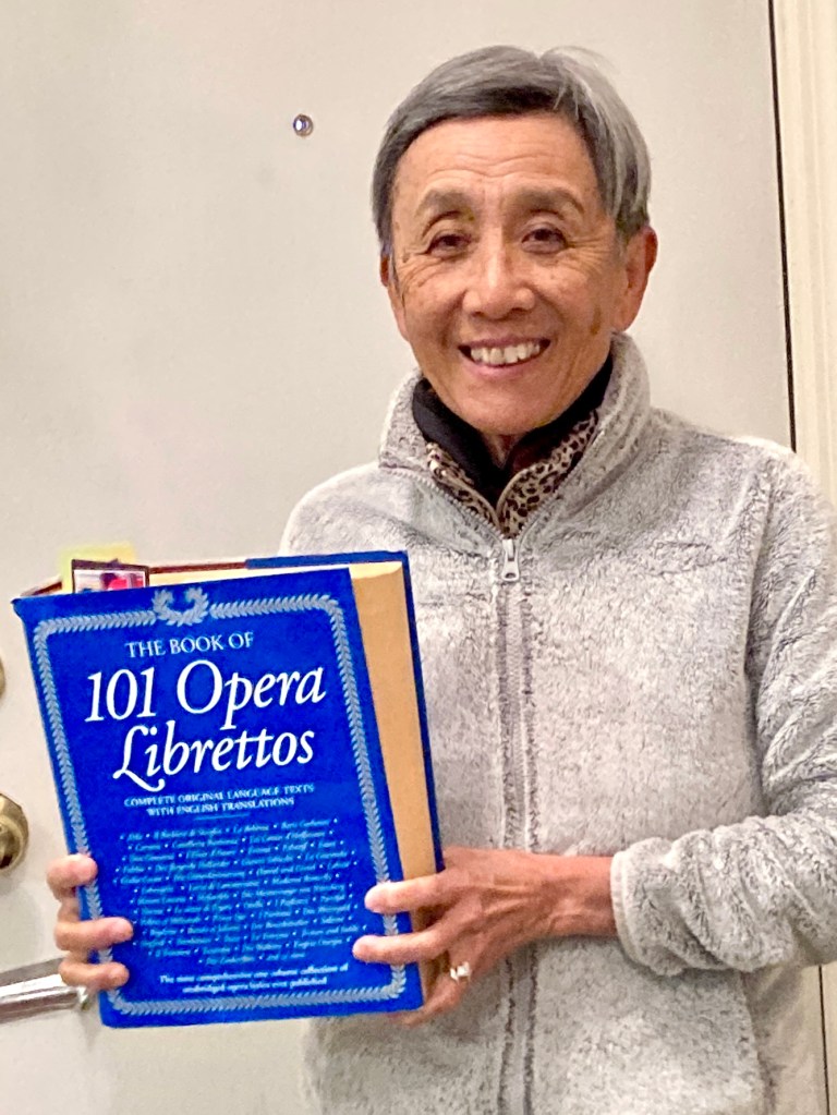 My next book is 101 Opera Librettos : Complete Texts with English Translations of the World’s Best-Loved Operas by Jessica M. MacMurray and Allison Brewster Franzetti, published in 1996. This doorstop of a book landed on my front porch just a week ago. It’s a Christmas present from my son Alex and daughter-in-law Ariel. They know how much I love opera. Each of the entries includes the opera’s synopsis, the text in the original language, and an English translation. My plan is to go through my favorite operas, starting with Tosca and The Magic Flute. Then, Verdi, I think. Maybe Rigoletto.